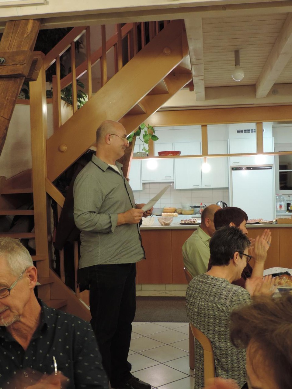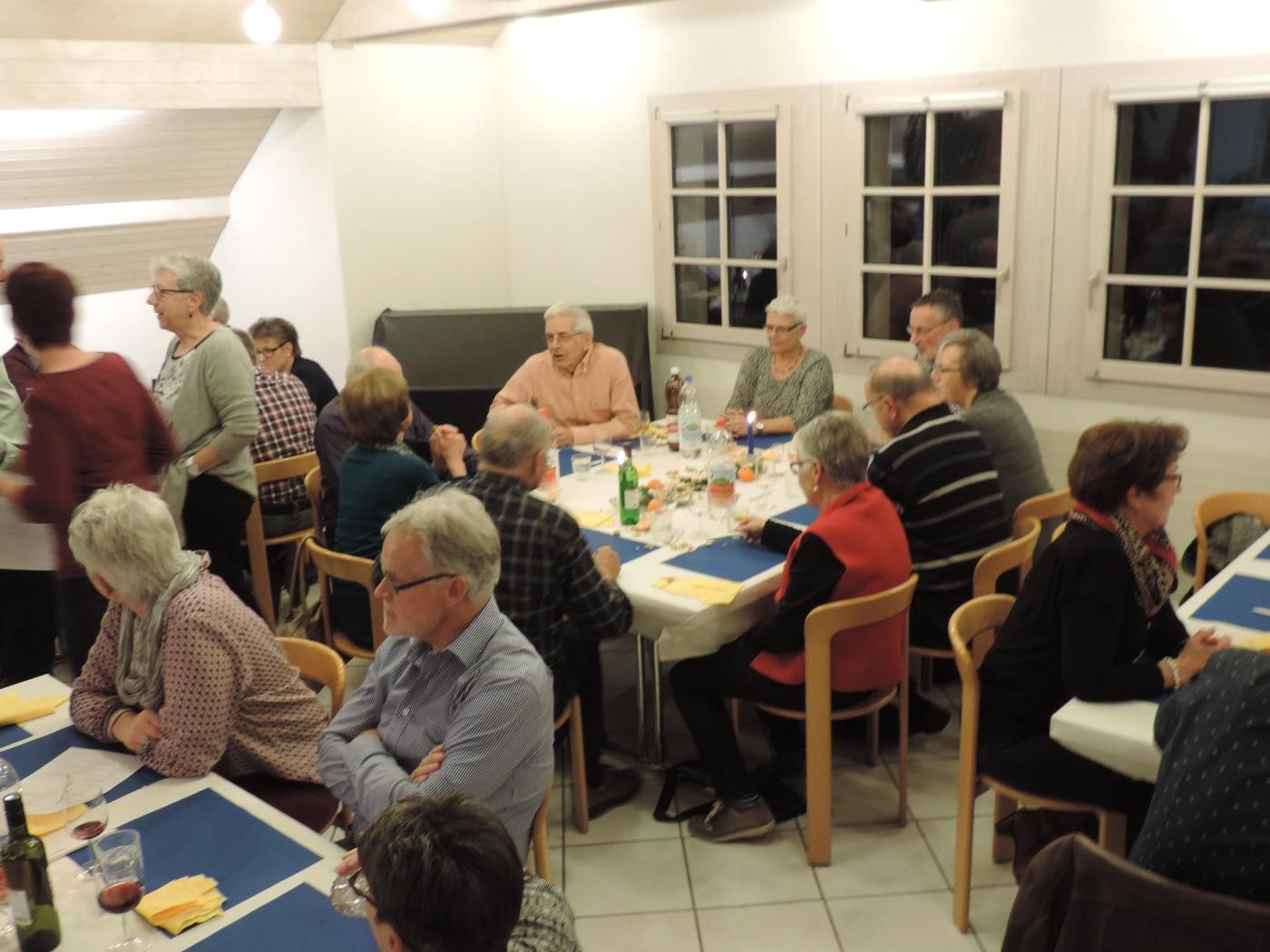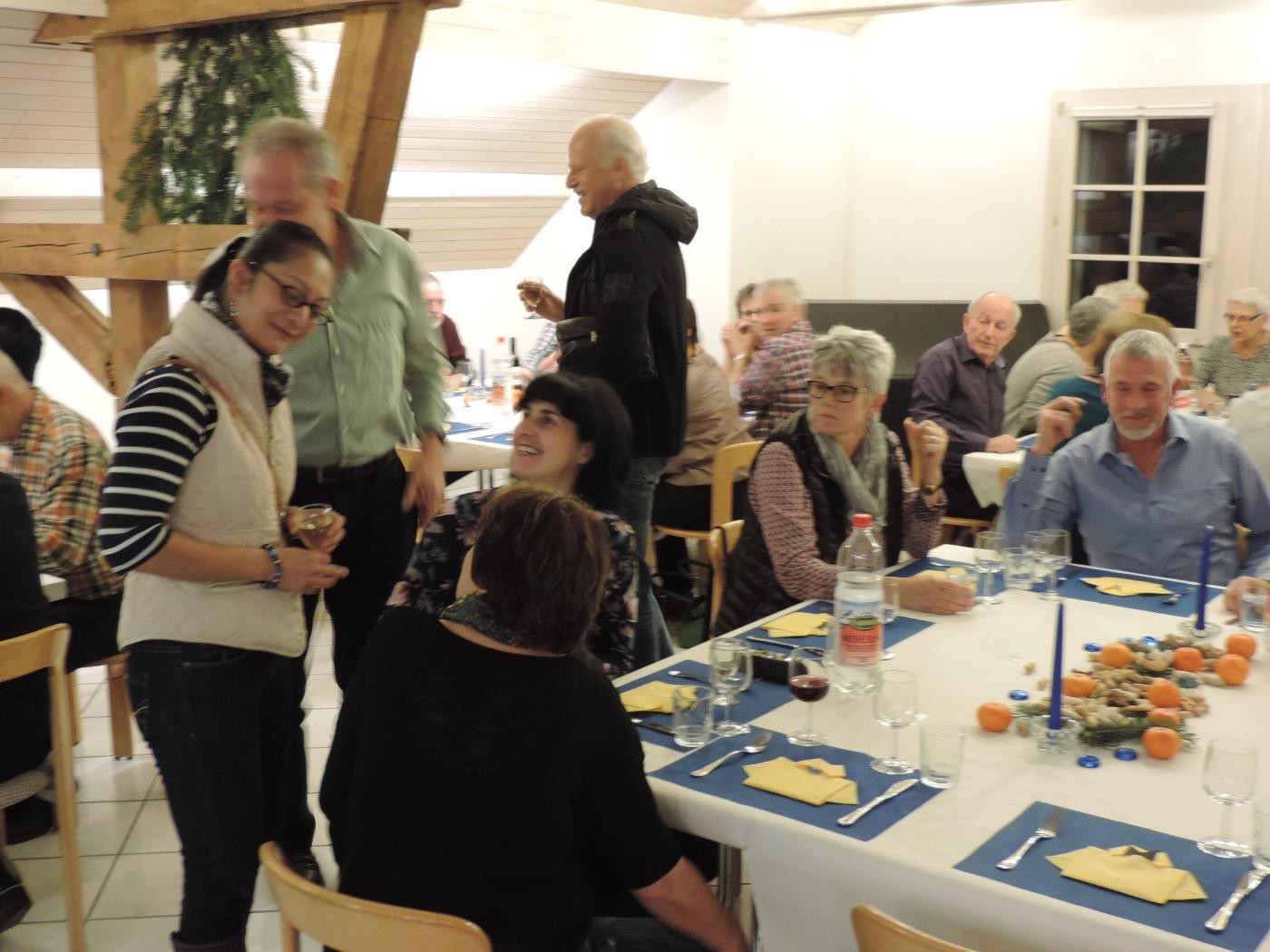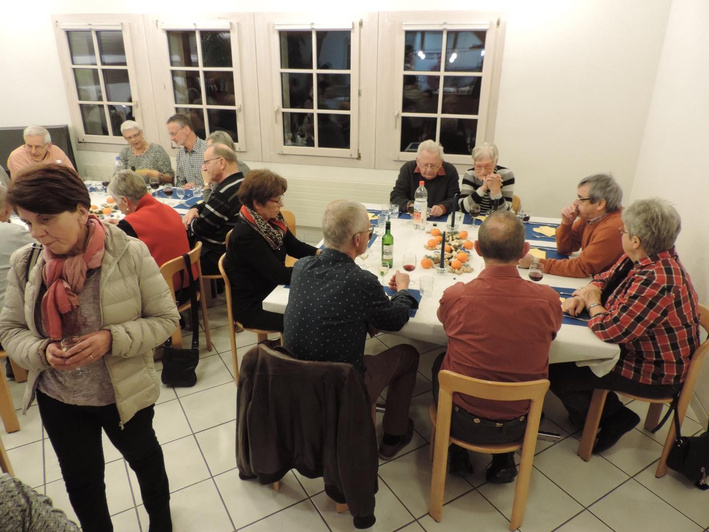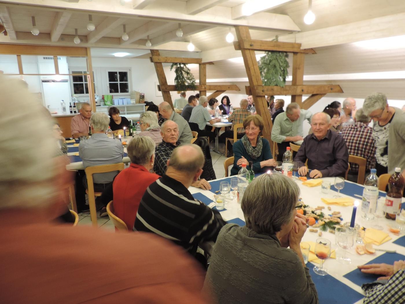 Der Samichlaus war ja vor einigen Jahren in Pension gegangen, deshalb unterhielt uns Ruedi Weinzerl nach dem Essen mit lustigen Witzen. Mit Spannung war das Quiz erwartet worden, in dem wie jedes Jahr knifflige Fragen gestellt wurden. Während wir älteren Semester uns noch gut an das Jahr der Einführung des Frauenstimmrechts erinnern konnten, war es schwieriger zu wissen, welches Land auch am 1. August seinen Nationalfeiertag feiert. Bei der Auflösung der Fragen wurde gelacht und manchmal auch gestaunt. Es konnten vier Rangruppen gebildet werden. Da allen Teilnehmern ein feiner Klaus-Zopf von der Bäckerei Egli&Sprenger überreicht wurde, war die Enttäuschung, nur den 4. Rang erreicht zu haben, verkraftbar.