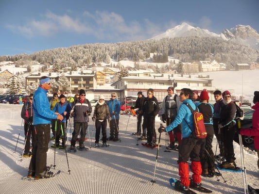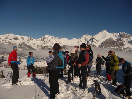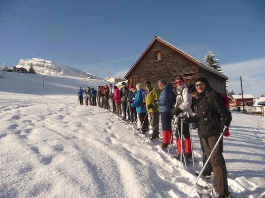 Männerriegler mit Schneeschuhen im Obertoggenburg unterwegs.