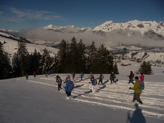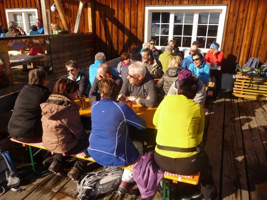 Die Ankündigung einer Challenge hinunter zum Schwendisee wurde voll ausgekostet. Das ca. 20 cm dicke Eis vermochte auch die 22-köpfige Gruppe zu tragen. Noch bestand für Konditionsstarke eine Zusatzschlaufe zu bewältigen, danach sich dann Alle im Seegüetli zum Mittagessen niederliessen. Beim Abstieg war der Schnee nicht mehr so leicht, denn die Sonne wärmte schön auf und ermöglichte den willkommenen Schlusshöck auf einer Sonnenterasse.