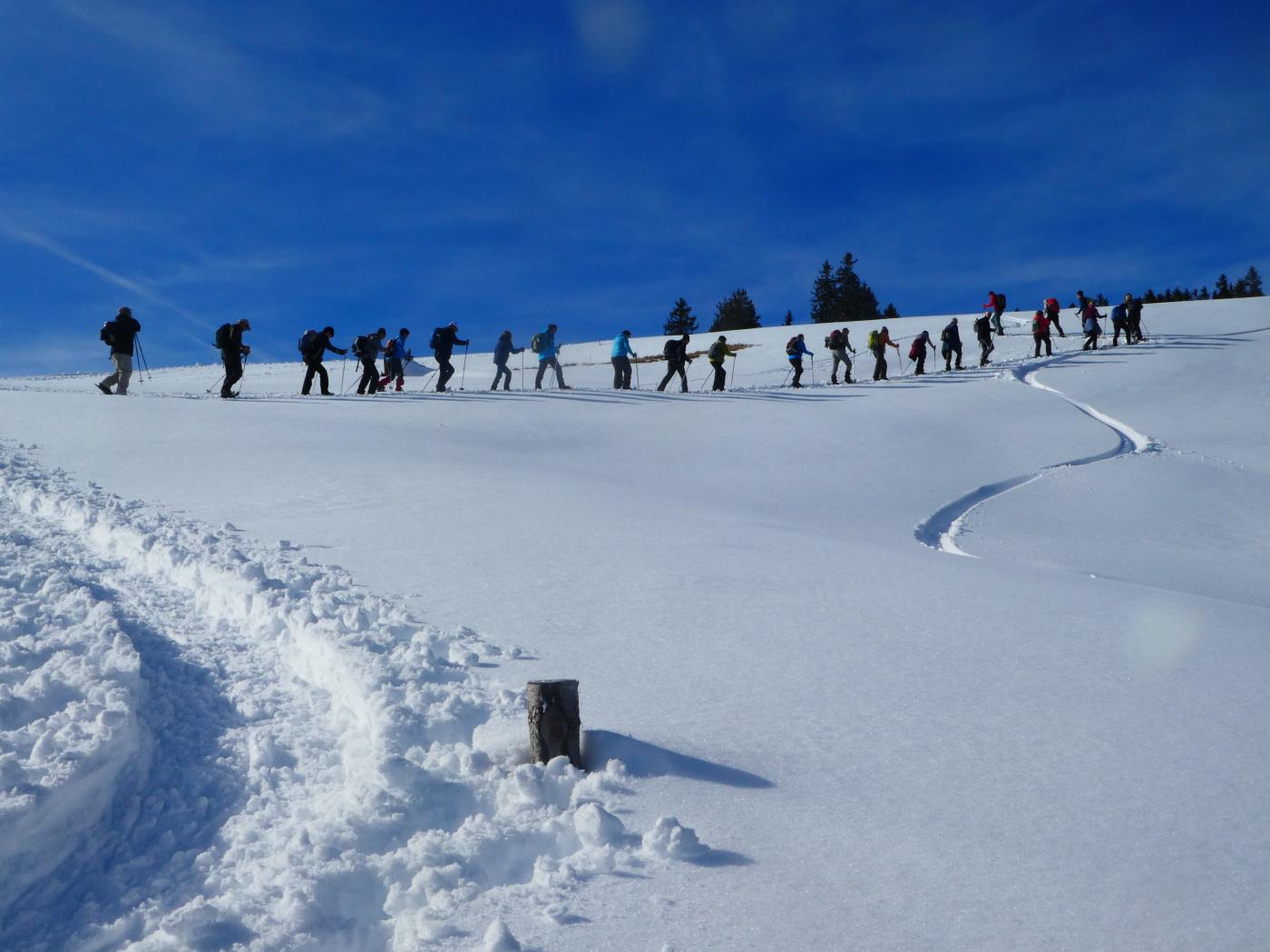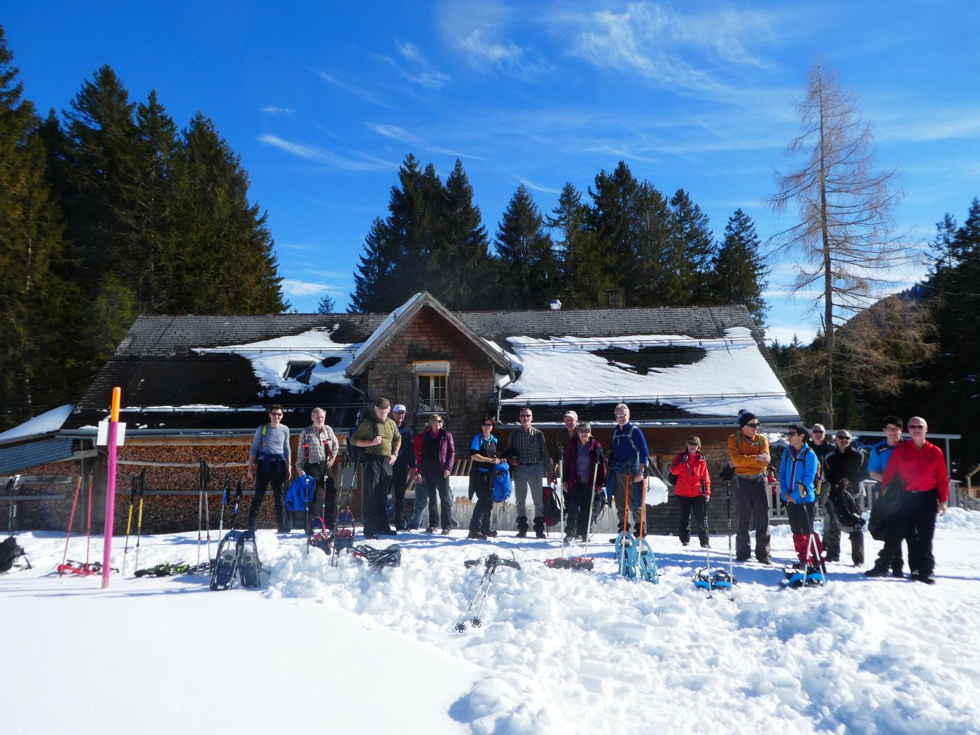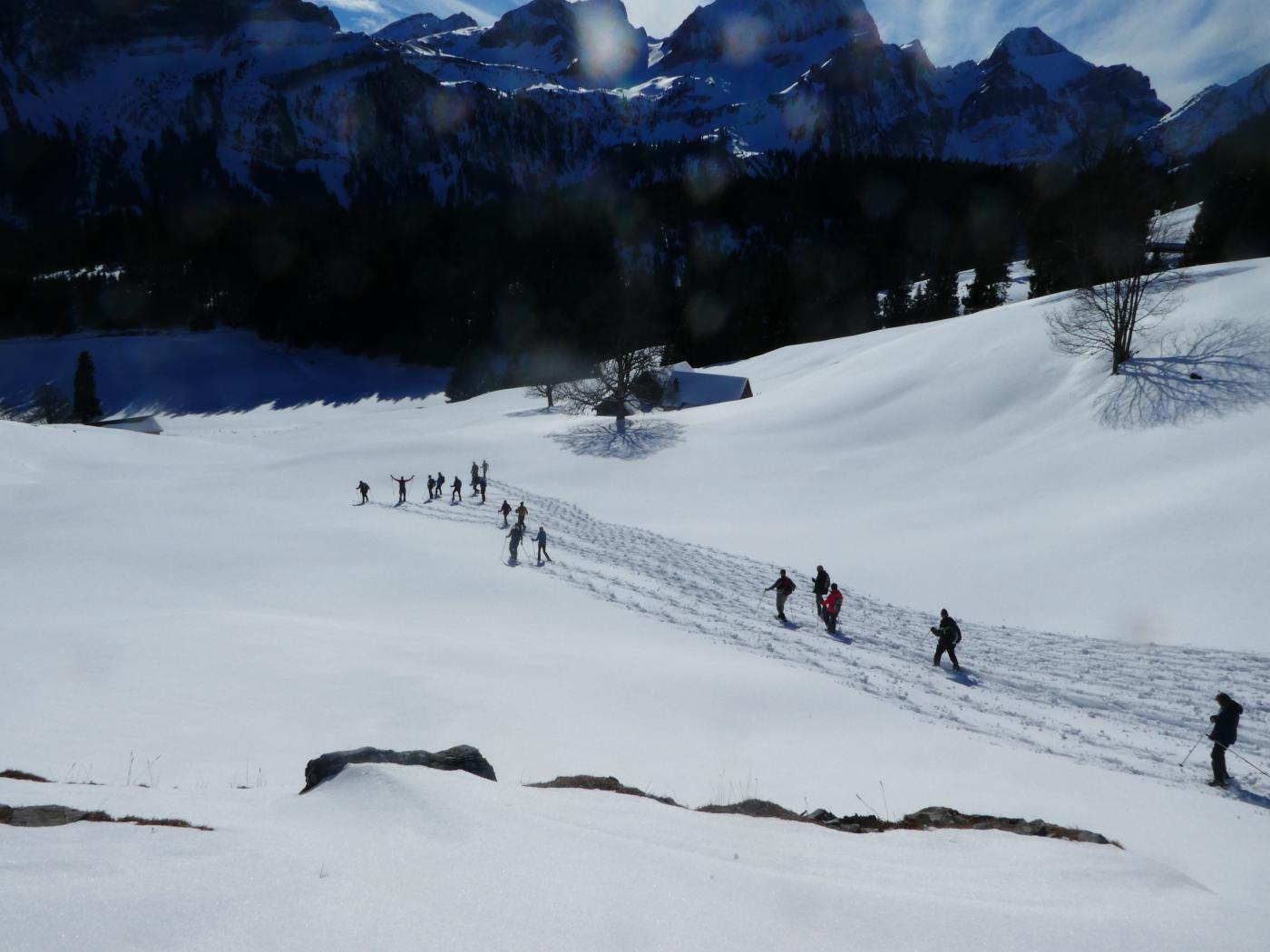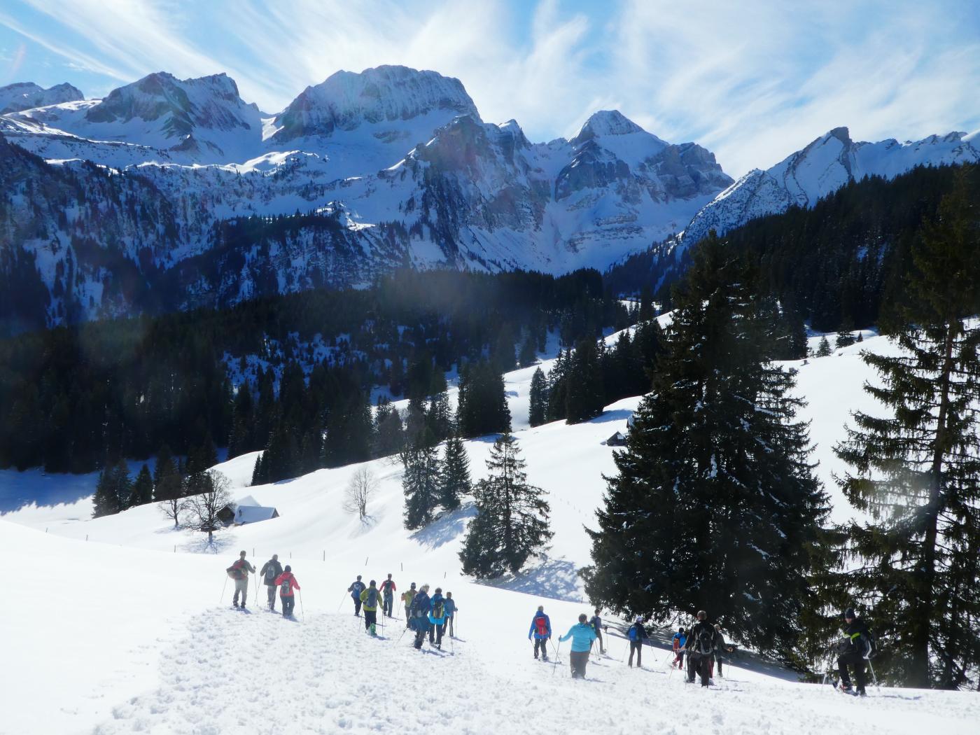 Schleierwolken und frühlingshafte Temparaturen bescherten den 24 Frauen und Männern vom Frauenturnverein Wiezikon-Horben und von der Männerriege Sirnach eine genussreiche Schneeschuhwanderung