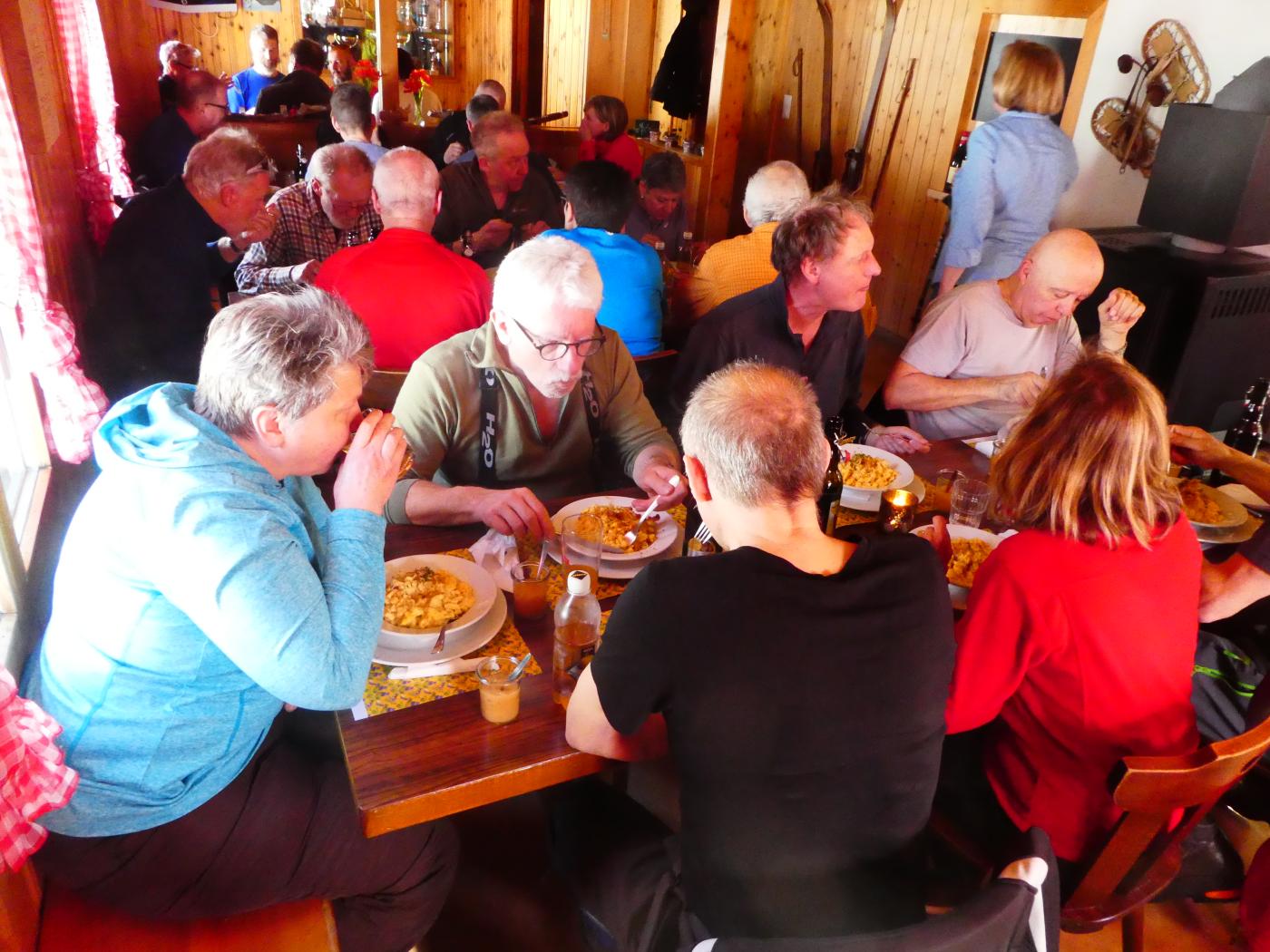 Mitte Februar starteten die erwartungsvollen Turnerinnen und Turner mit Anhang zur traditionellen Schneeschuhwanderung im Toggenburg. Von Wildhaus-Oberdorf führte der bewährte Tourenleiter die Schnee hungrigen auf einer abwechslungsreichen Route an kürzlich zerbrochenen oder entwur-zelten Tannen vorbei in die „Oase“ Gamperfin mit dem gleichnamigen Gasthaus zum Mittagessen. Neu gestärkt bewältigte die muntere Gruppe auf einem anderen Weg die 200 m Höhenunterschied über den Oelberg zum Ausgangspunkt. Bei einem bekömmlichen Drink bei der Talstation konnten nochmals die letzten Sonnenstrahlen genossen und die Kontakte gestärkt werden.