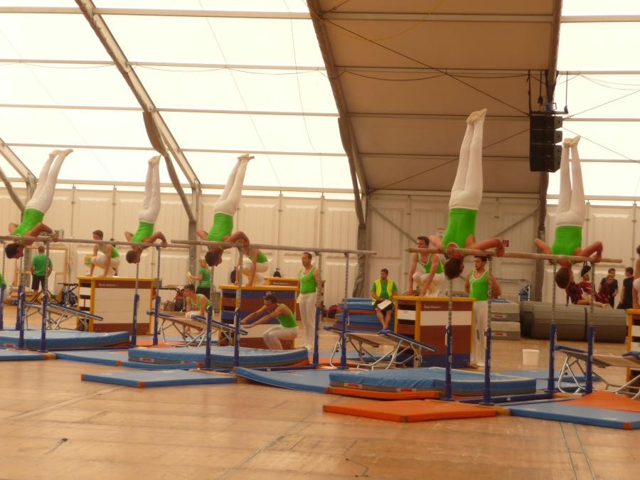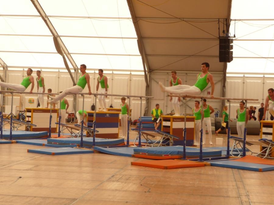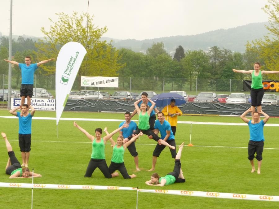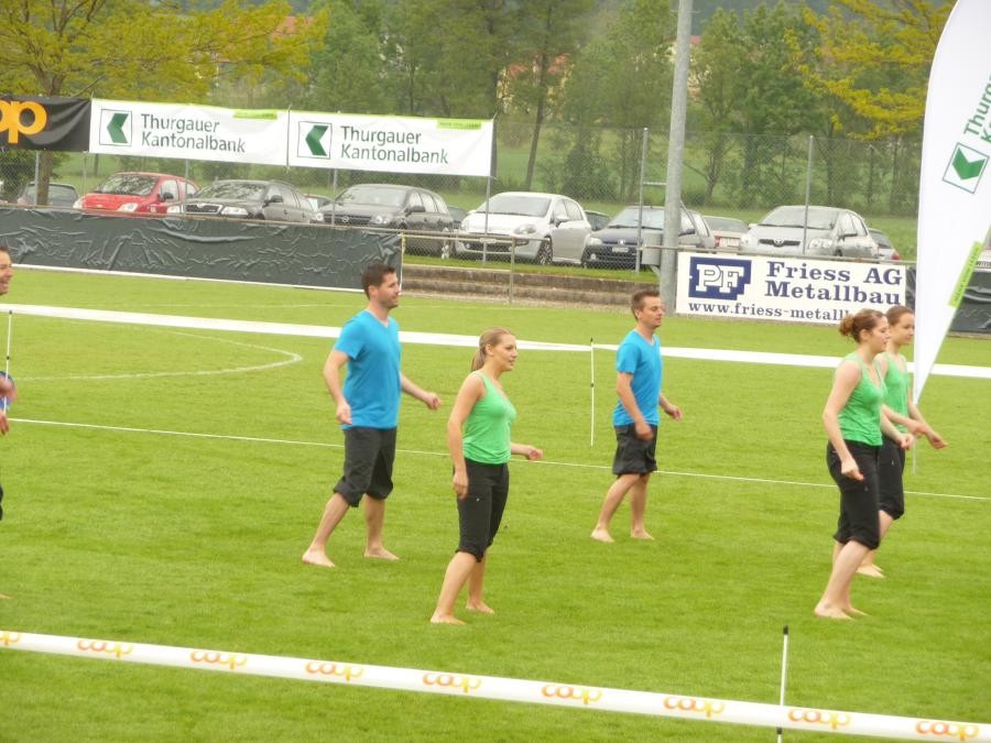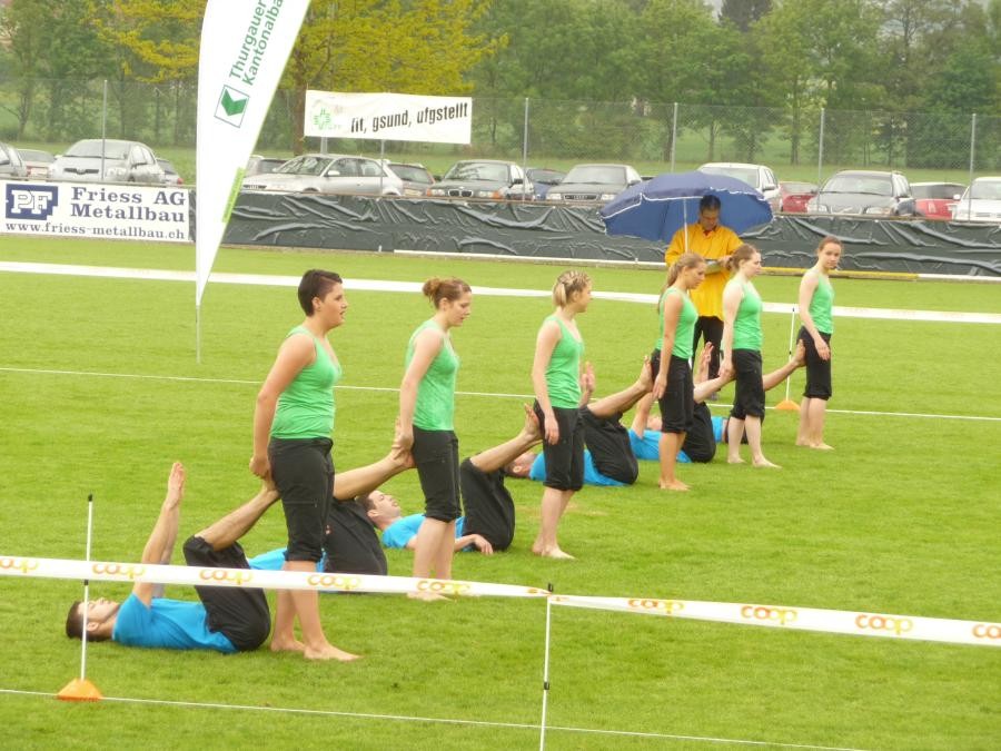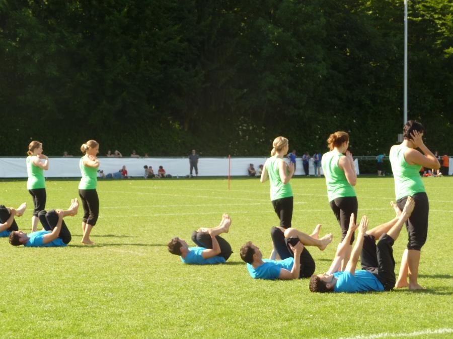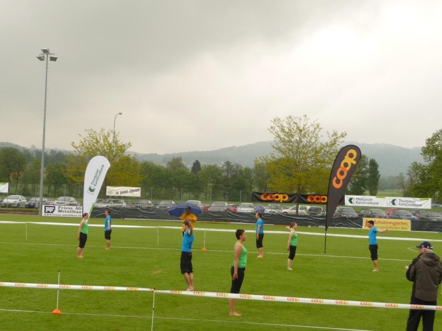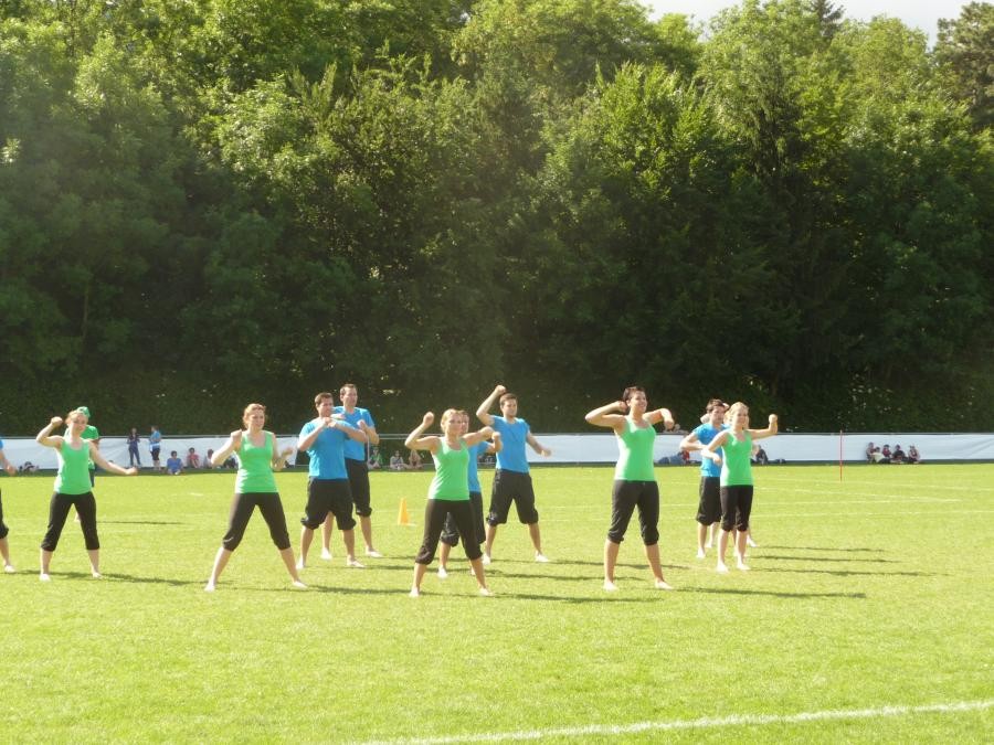 Kantonalturnfest. Kurz nach der Ankunft, wärmte sich die Damen- und Aktivriege für den