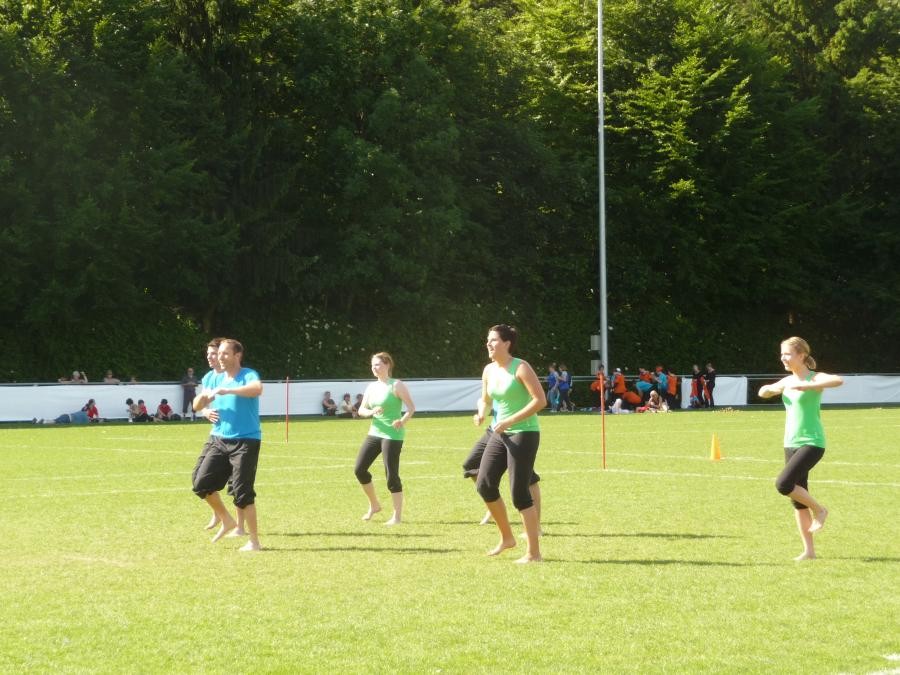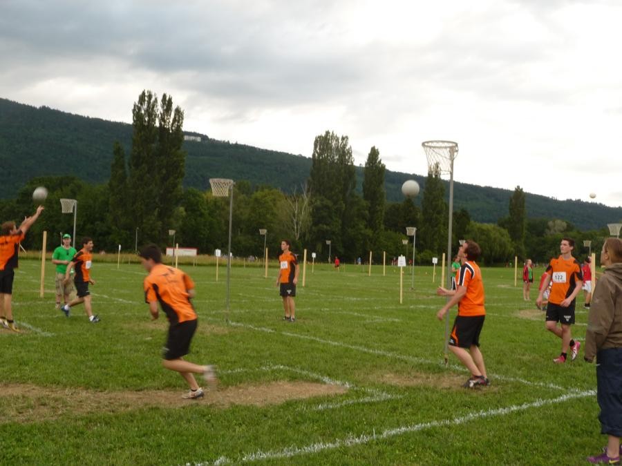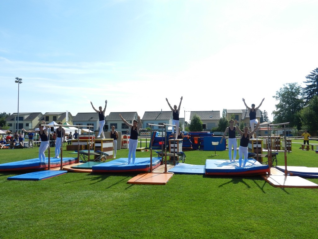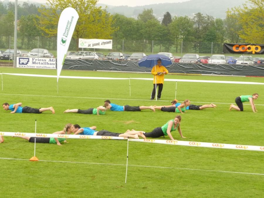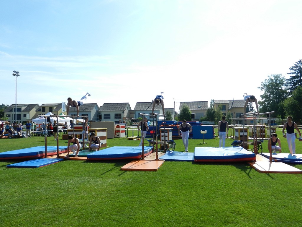 Schulstufenbarren mit nur 7 Turnerinnen eine 7.40 erturnen. Die Aktivriege erreichte mit einer 8.63 im Barren wieder eine zufriedenstellende Note. Unsere Sprinter kamen trotz einem Fehler in der Pendelstafette noch auf eine gute Note von 8.74. Eine sehr gute Leistung zeigten die Turner im Fachtest Korbball und Volleyball. Trotz der sengenden Hitze erreichten sie im Korbball eine 9.03 und im Volleyball sogar die Bestnote von 10.00.