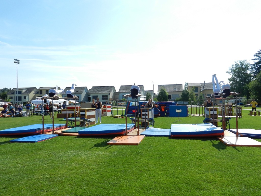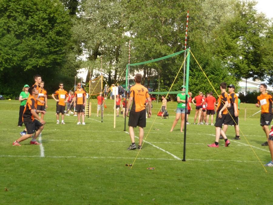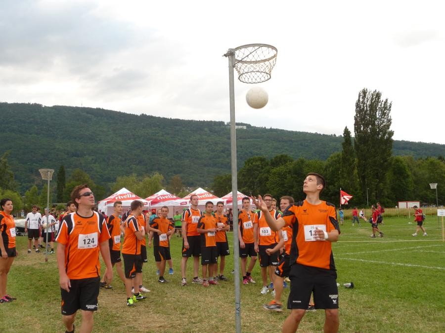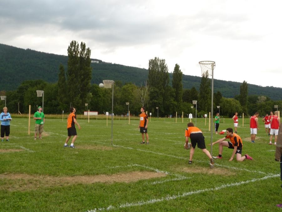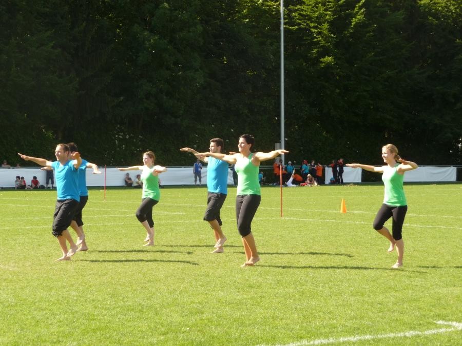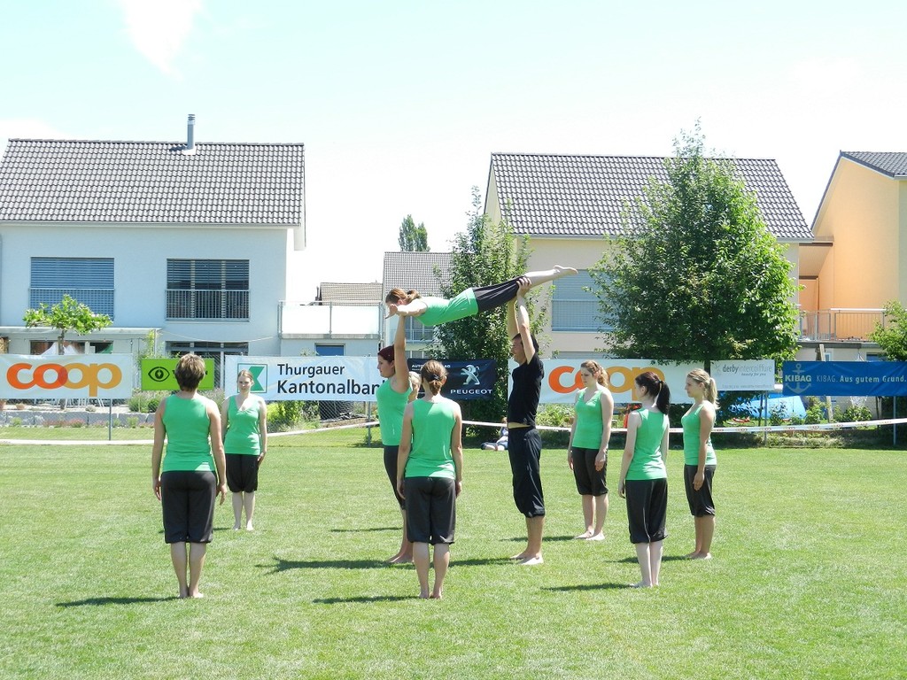Schulstufenbarren mit nur 7 Turnerinnen eine 7.40 erturnen. Die Aktivriege erreichte mit einer 8.63 im Barren wieder eine zufriedenstellende Note. Unsere Sprinter kamen trotz einem Fehler in der Pendelstafette noch auf eine gute Note von 8.74. Eine sehr gute Leistung zeigten die Turner im Fachtest Korbball und Volleyball. Trotz der sengenden Hitze erreichten sie im Korbball eine 9.03 und im Volleyball sogar die Bestnote von 10.00.