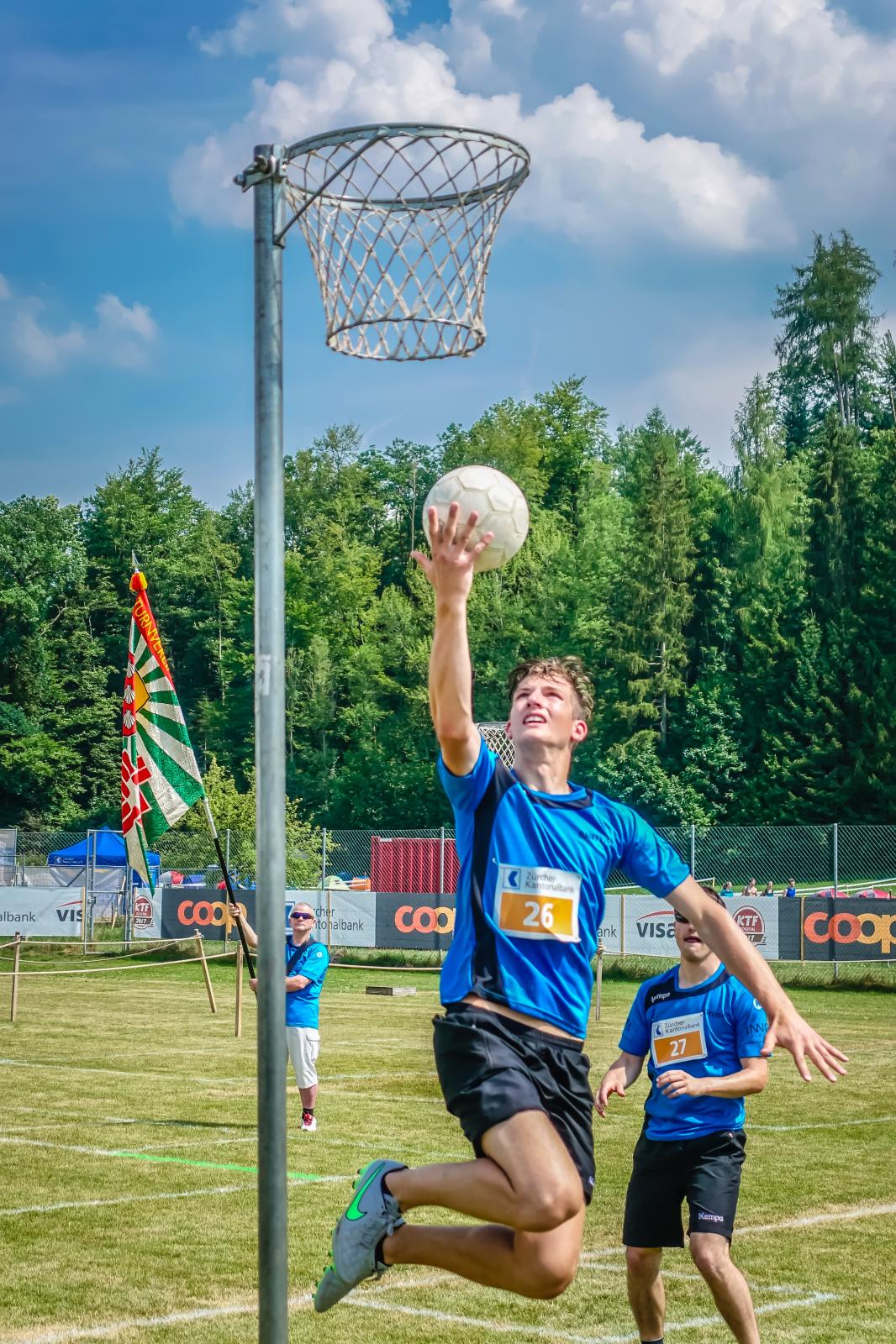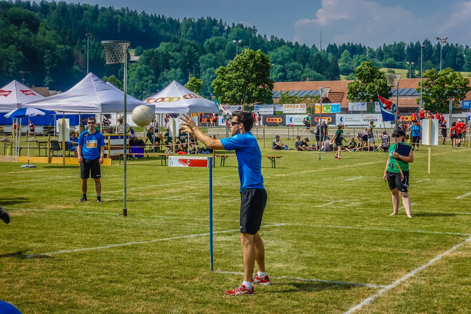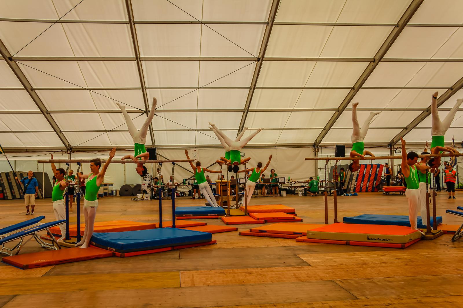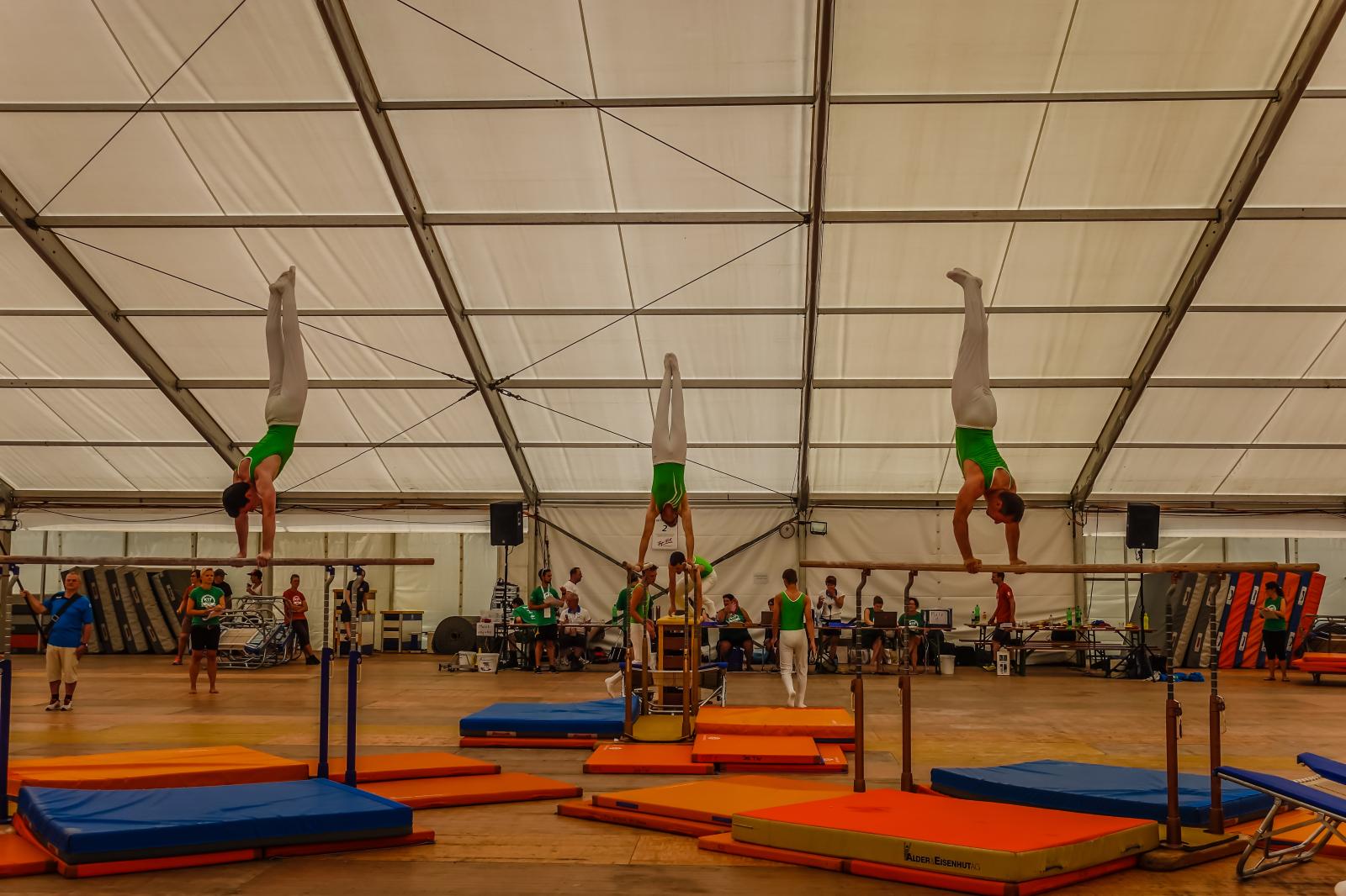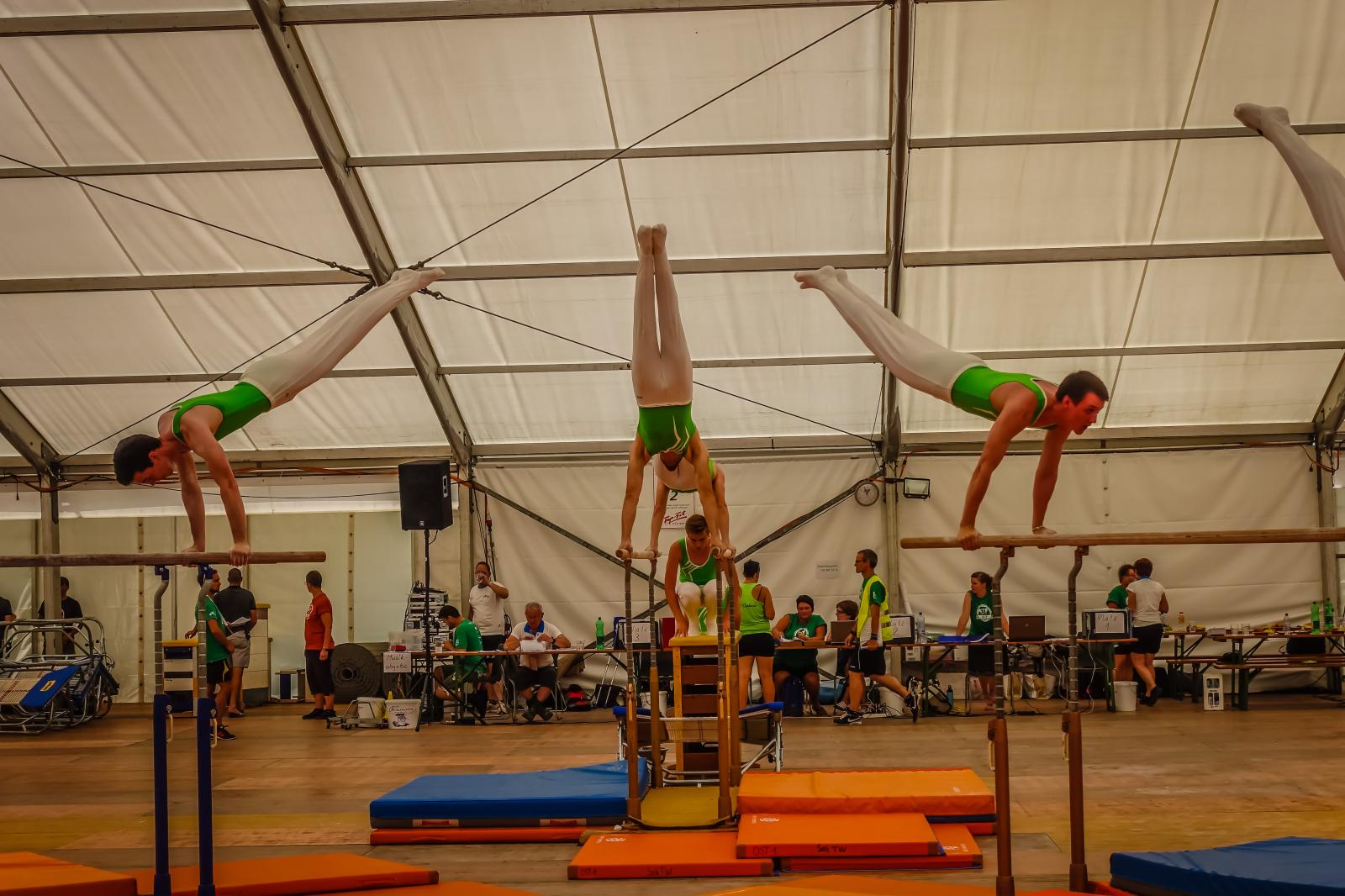 Kurz nach dem Mittag begann für den TV Sirnach der Wettkampf. Im Schulstufenbarren zeigte die Damenriege eine gute Leistung und erreichte die Note 8.03. Die Turner der Aktiven erreichten im Barren sogar eine 8.90 und konnten somit die tolle Leistung von der TGM 2017 bestätigen. Im Fachtest Unihockey wurde ebenfalls eine gute Note von 8.85 erreicht. In der Pendelstafette wurde eine 8.83, im Fachtest Volleyball eine 8.77 und im Fachtest Korbball eine 8.80 erreicht.