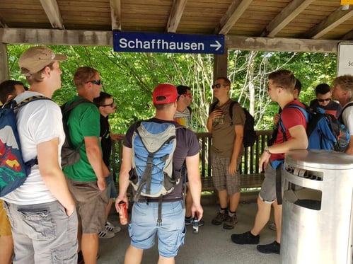 Gegen Abend fuhren wir weiter nach Schaffhausen und bezogen dort unser Hotel. Anschliessend machten wir uns auf zum gemeinsamen Abendessen im Restaurant Falken. Wie der Zufall es wollte, fand an diesem Abend das Kammgarn Hoffest mit Live-Musik und Street Food Village statt. Die ganze Turnergruppe verbrachte so einen stimmungsvollen Abend am Ufer des Rheins.
