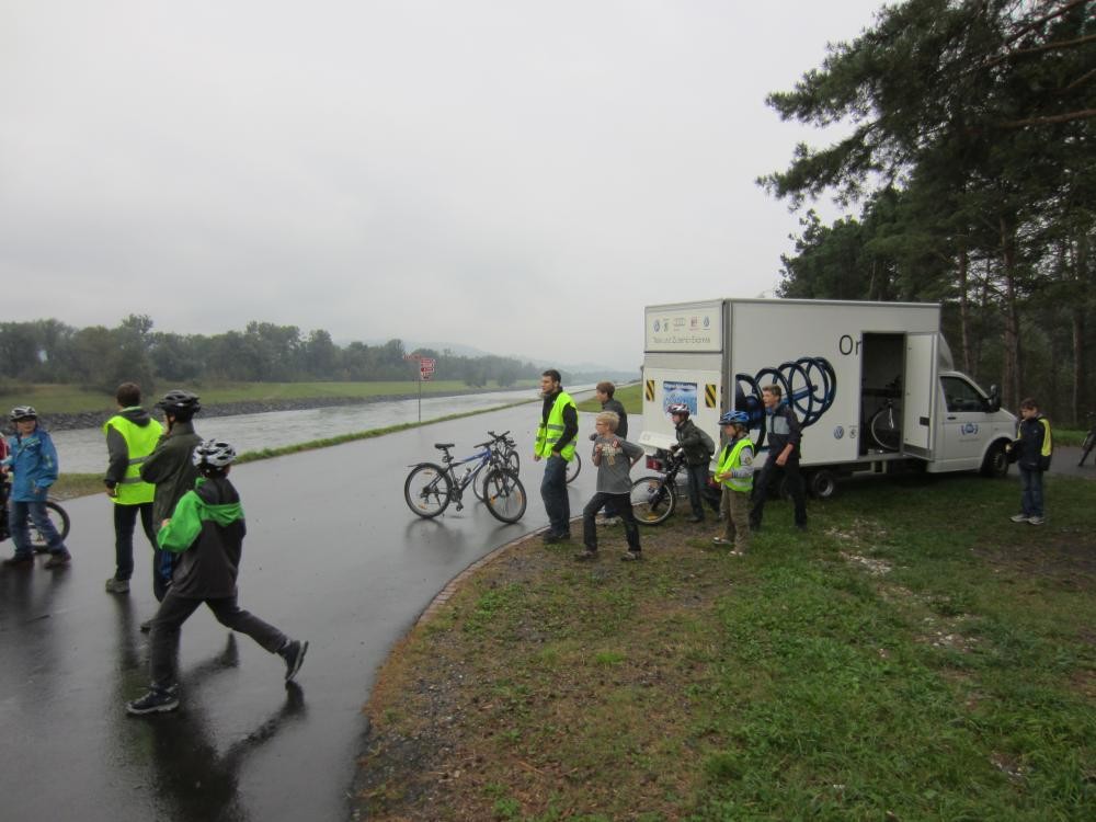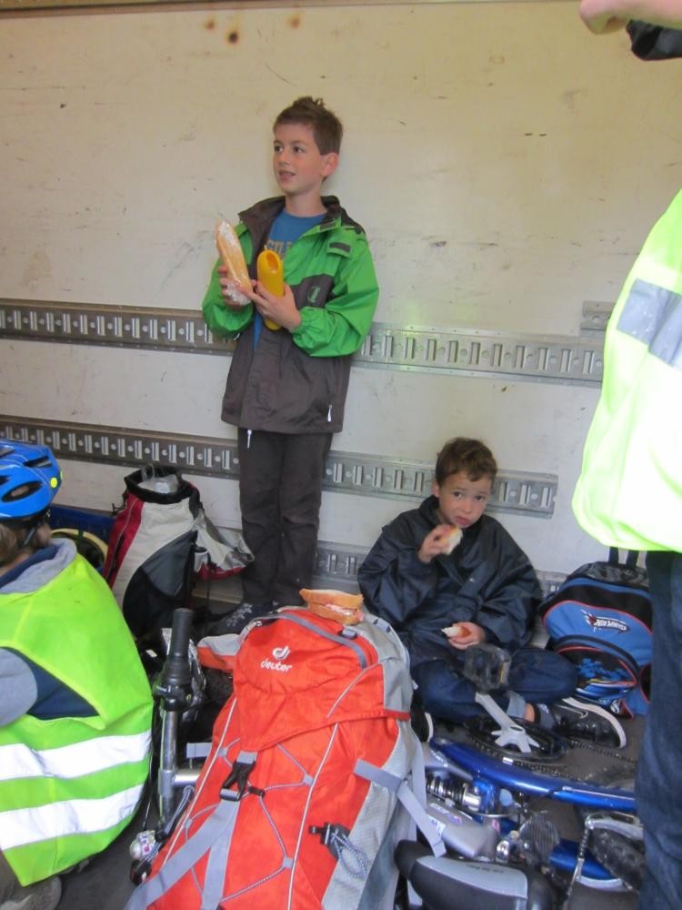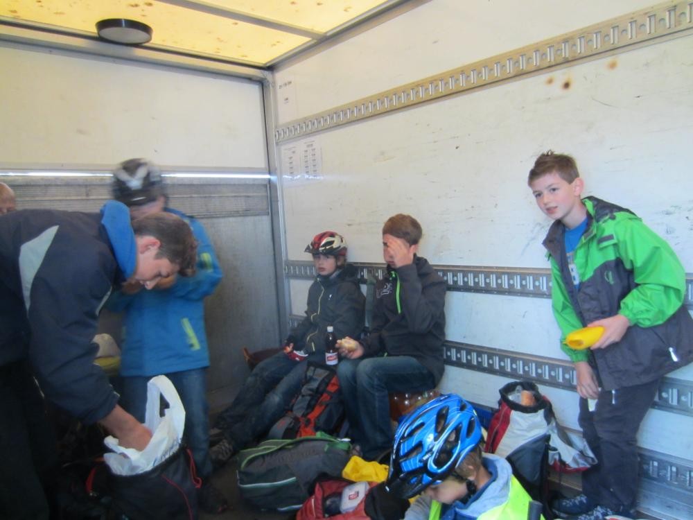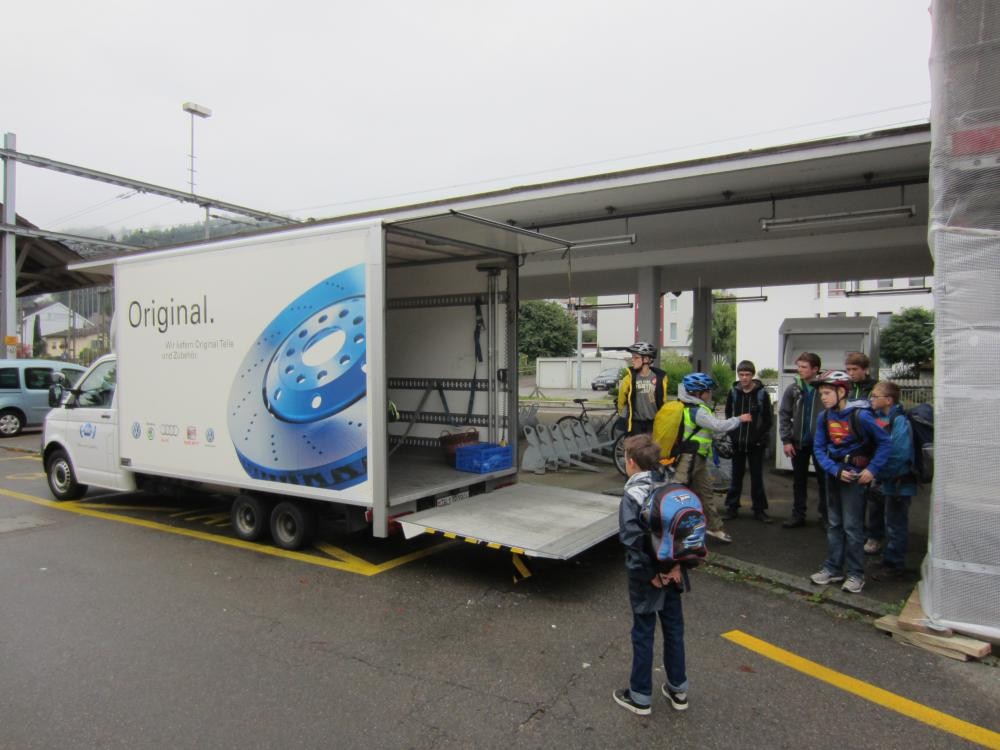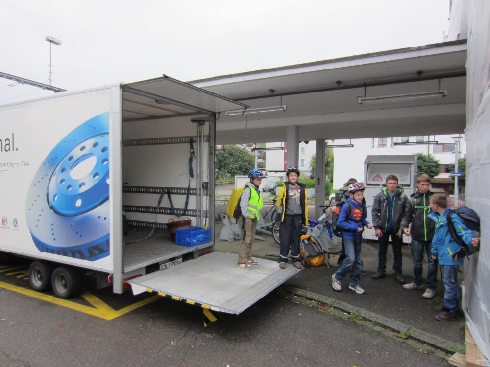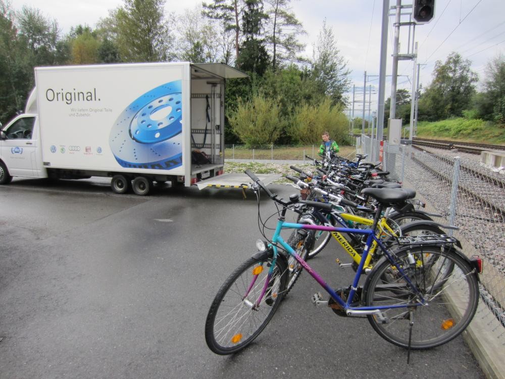 Dort wartete schon der praktische Lieferwagen mit unseren Velos, bereit für