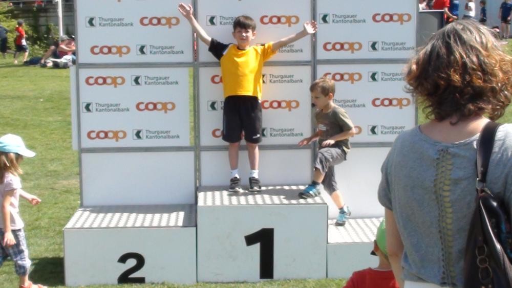 Angefeuert von ein paar Eltern und vielen Zuschauern legten wir die zwei Runden oder 1'460 Meter in knapp 8 Minutenzurück. Es hat allen grossen Spass gemacht.