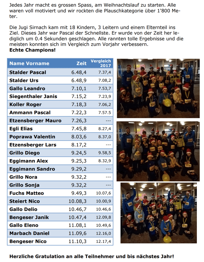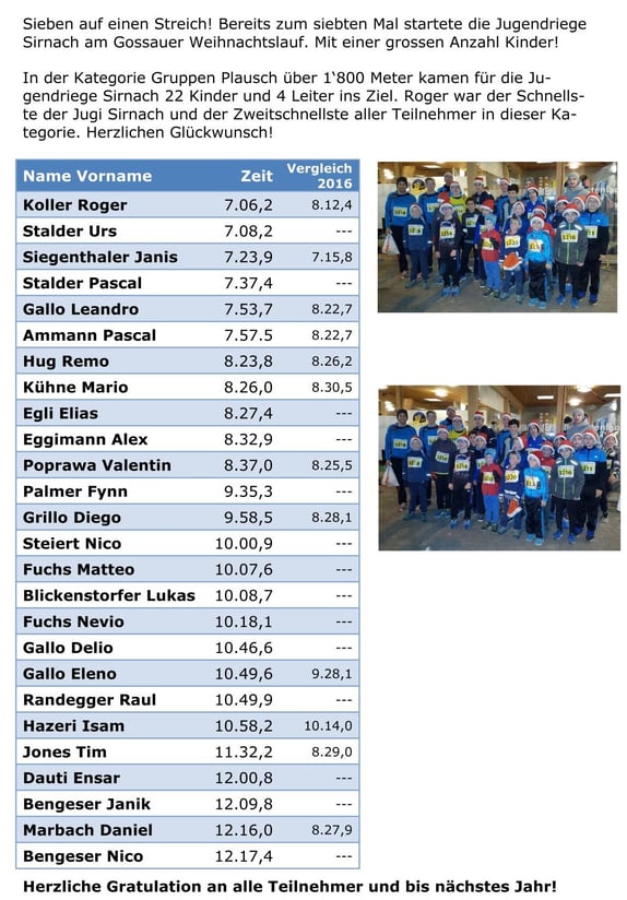Mit 14 Jugendriegler und 3 Leitern starteten wir am 3. Dezember das erste Mal am Gossauer Weihnachtslauf.